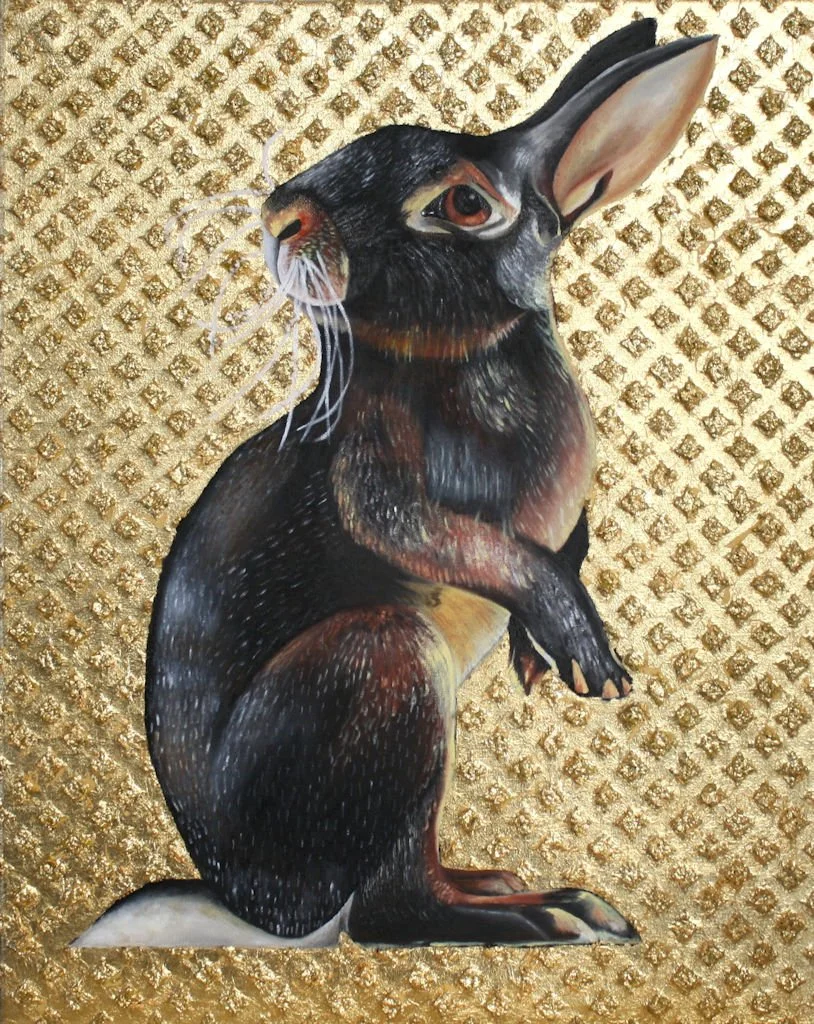 gold leafing, oil paintings, drawings, ceramic sculptures, installations